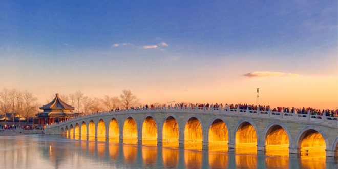 据说当年【颐和园】十七孔桥的建造者精心设计,将南回归线的落日与十七孔桥成垂直状态,因此当夕阳西下时,阳光最大程度的洒满十七孔桥的每个桥洞,并出现金光穿洞的奇特景观